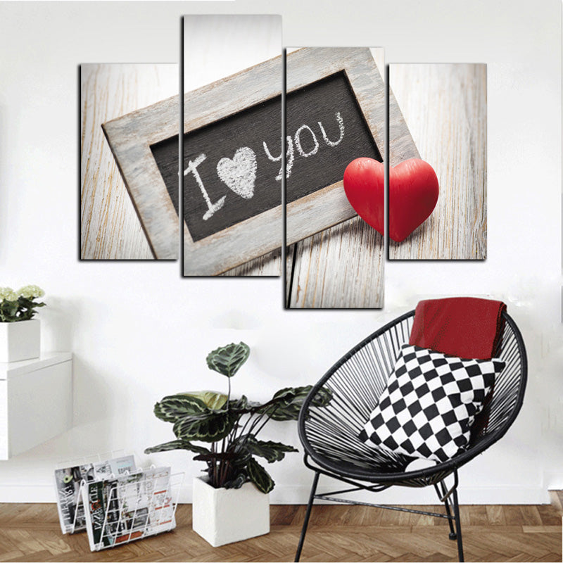 4 Panel "I Love You" Canvas Prints Oil Painting Wall Decor Art Picture